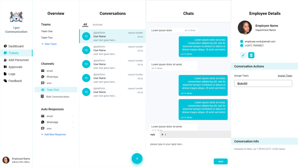 The government of Botswana has 34 ministries and governmental agencies and over 150 departments within each of them. Therefore, in order to reach all these government offices – citizens have to know which ministry and department offers the services they need, find their contact details and then go on to call or email them which often goes unanswered.